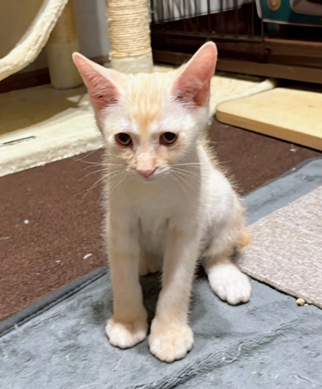 体は大きいですが、のんびりでマイペースな性格で遊びは大好きです。母猫のこもちくらげが2カ月間しっかりと子育てをしてくれたので、健康で穏やかな子に育ちました。