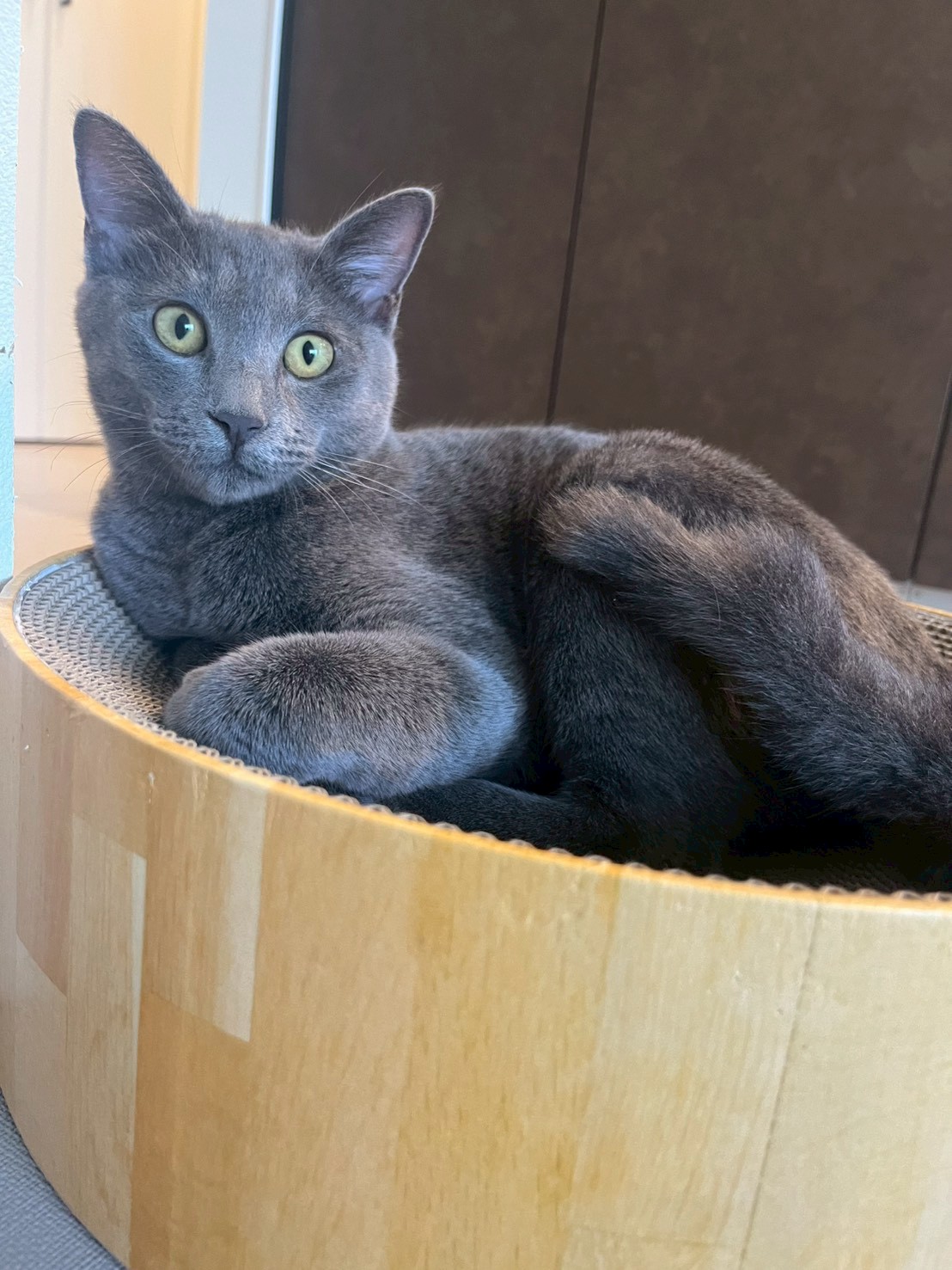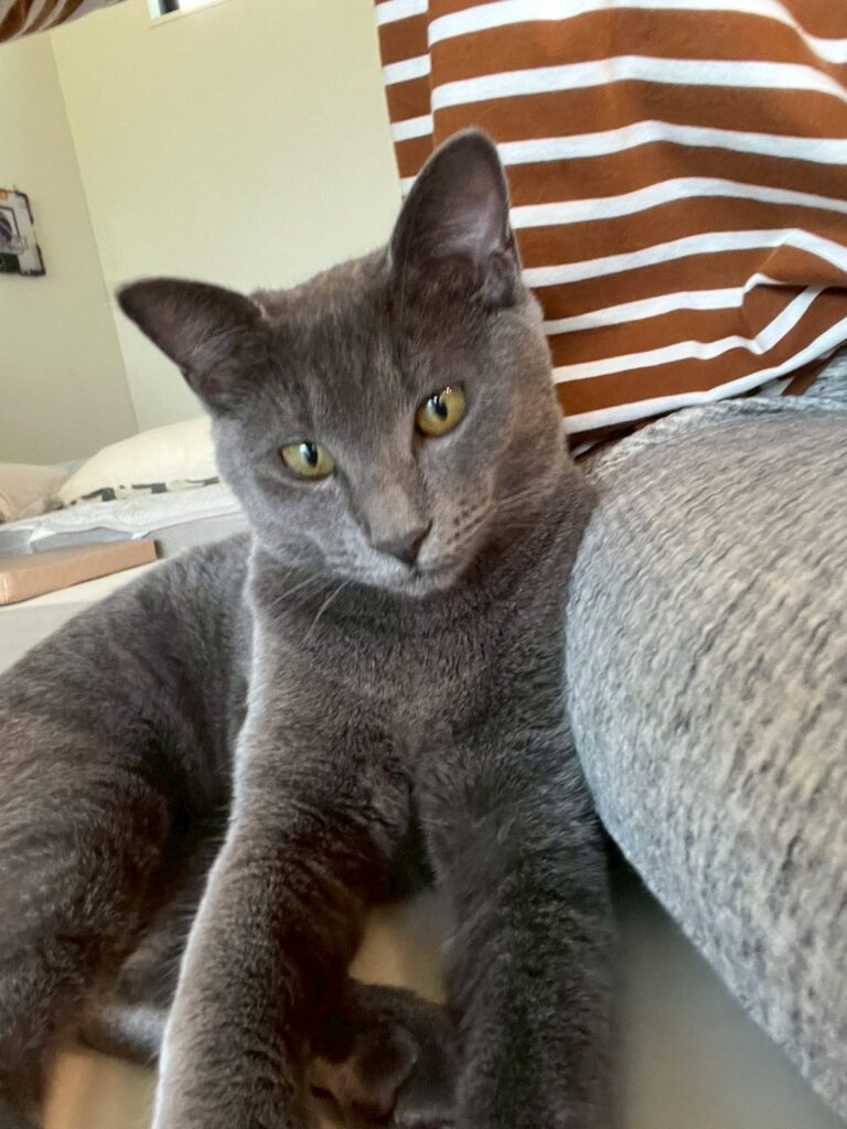 3匹揃って預かりスタッフ宅へ移動して、家猫修行を開始しました。お外にいた時間か長かったため、人馴れには時間がかかります。根気よく預かりスタッフがお世話をして新しいお家へ繋げます。CMに出てくるような綺麗なロシアンブルーのようです。人慣れもバッチリできました。