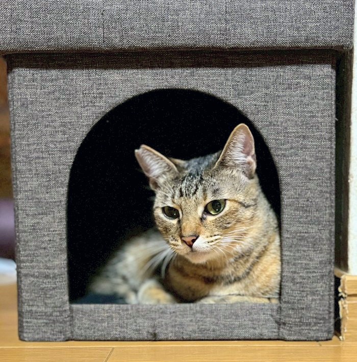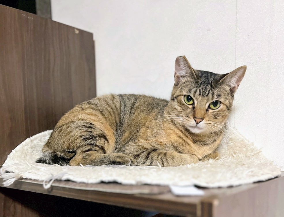 お外でご飯をもらってましたが、そこはペット禁止なため保護依頼が生活環境課から連携されました。一緒にいたあいみと子猫のろうがも保護をしました。警戒心が強くなかなか人馴れができませんでしたが、保護から4ヶ月経ち少しずつ警戒心がとけはじめました。だいぶ人馴れが進んできたので譲渡会にデビューします。とても優しい性格です。