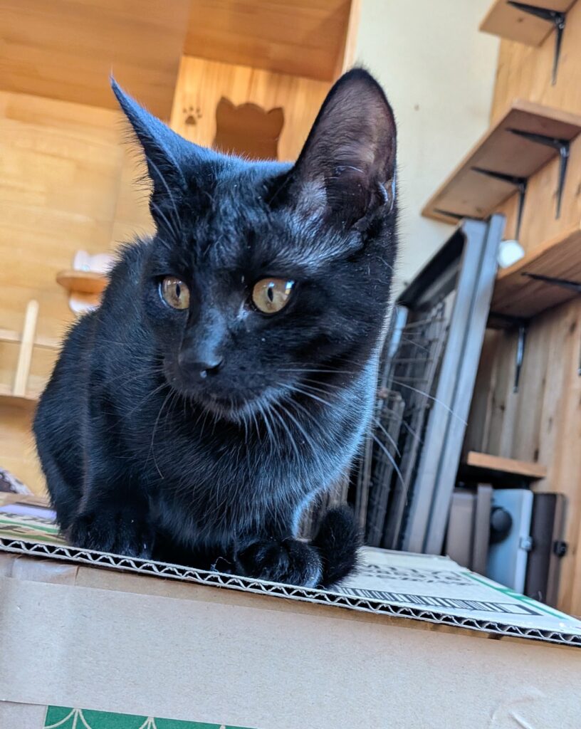 少し毛足が長くふわふわしていて、茶色がかった黒になってきました。最近はスレンダーになってあまりふあふあ感がなくなってきました。食いしん坊でものすごくなつっこい子です。姉妹はさーらです。