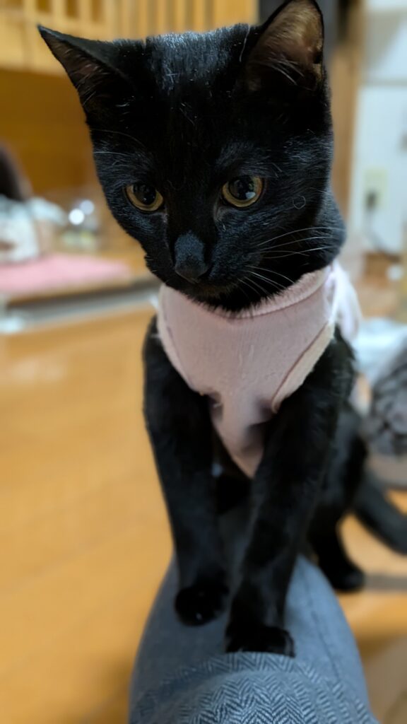 10日後に2匹の乳飲み子を保護したので同じ位だったため5匹をミルクで育てあげて、無事に譲渡会デビューします。元気いっぱいです。とても人懐っこいです。背中と耳の中に少し白い毛があります。