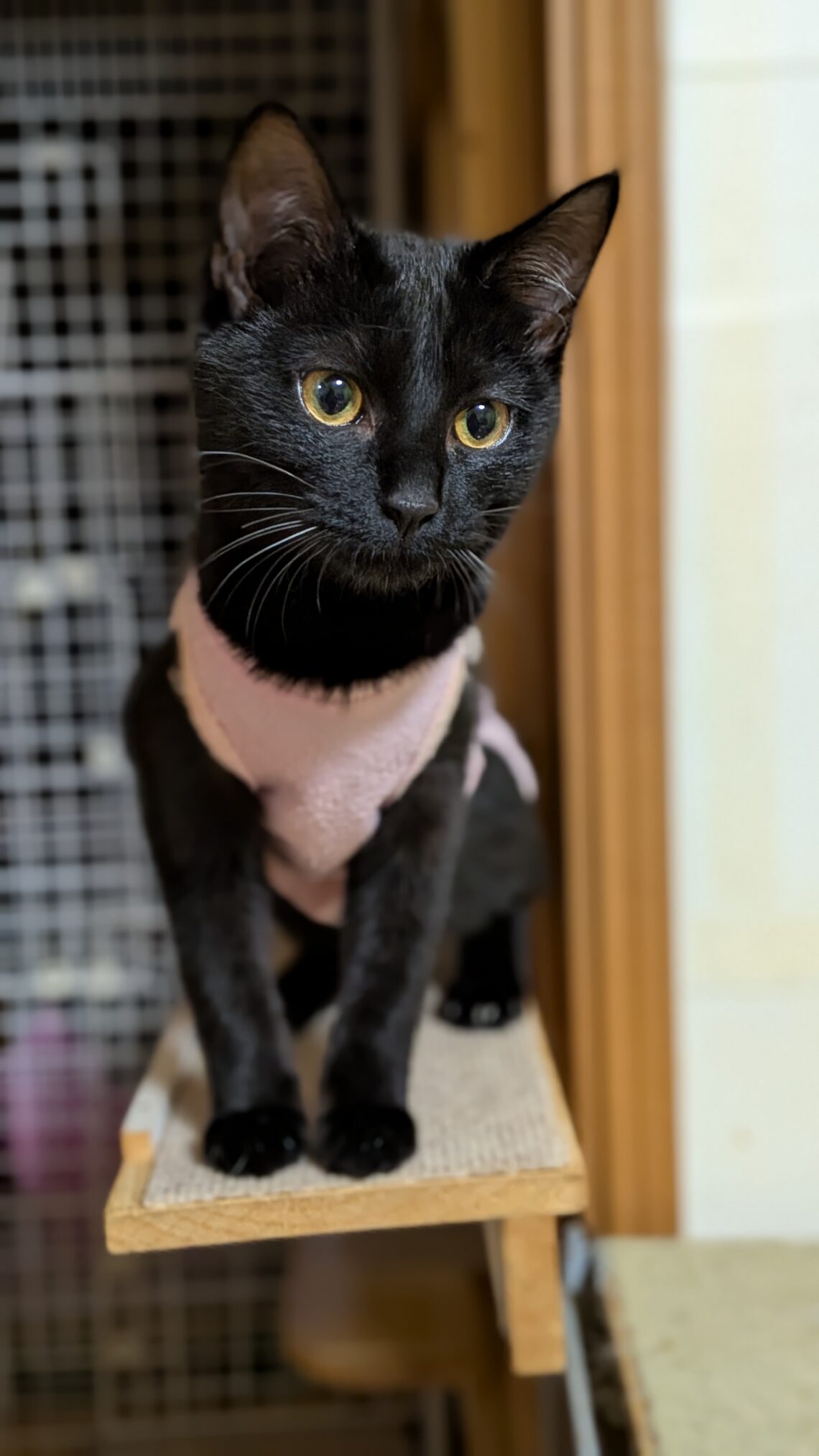 10日後に2匹の乳飲み子を保護したので同じ位だったため5匹をミルクで育てあげて、無事に譲渡会デビューします。元気いっぱいです。とても人懐っこいです。背中と耳の中に少し白い毛があります。